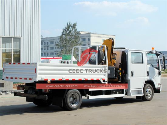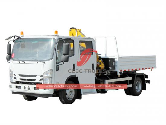 ISUZU NPR cabine dupla caminhão com dobrando guindaste |