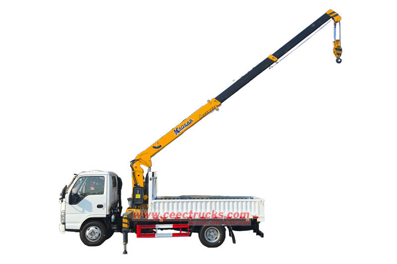 O guindaste sobre caminhão Isuzu ELF de 3,2 toneladas oferece uma ampla gama de tonelagens opcionais, incluindo 2 toneladas, 3,2 toneladas, 4 toneladas e assim por diante, até 30 toneladas. Quanto ao tipo de guindaste, os clientes têm a flexibilidade de escolher entre um guindaste de braço reto ou um guindaste de braço dobrável.