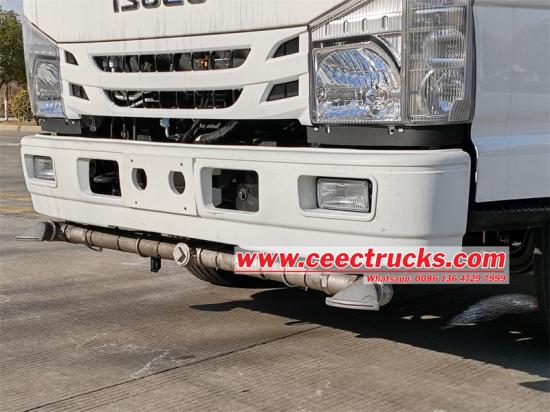 CEEC O caminhão de aspersão de água de 100p Isuzu ELF é usado para operações de rega Que é modificado no chassi leve ISUZU NKR 100P, com o motor de 120 hp de 4kh1, deslocamento de 2999ml, caixa de câmbio ISUZU MSB de 5 velocidades O caminhão possui um tanque de água de carbono de 5000L Ellipse, com Bomba de água 65qzf-40/50, traseira é uma máquina de limpeza de pressão ultra-alta combustível, spray frontal, spray, Isso garante que o veículo possa realizar com eficiência as operações de rega.