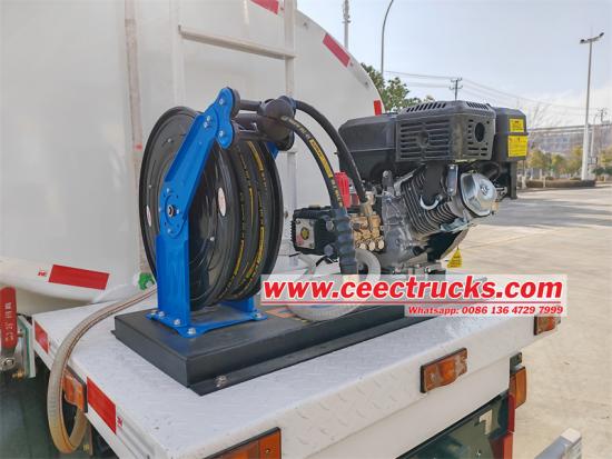 A velocidade de rotação da máquina de limpeza atinge 2900 revoluções por minuto (R P M.) Esse projeto da bomba rotativo de alta velocidade não apenas aumenta a eficiência do jato de água, mas também garante a estabilidade e a durabilidade da máquina de limpeza durante a operação contínua de longo prazo Alta velocidade de rotação significa maior eficiência do trabalho e capacidade de limpeza mais forte, permitindo que o caminhão de aspersão de água responda rapidamente durante a operação e as tarefas de limpeza de superfície de grande área de grande área