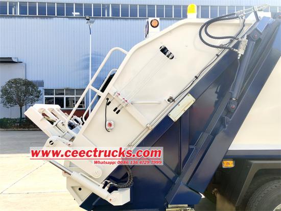 Mecanismo de carregamento traseiro:Possui um mecanismo de levantamento de lixo do tipo flip montado na parte traseira, que permite que o veículo conecte e gire facilmente sobre uma lixeira padrão para obter carregamento automático de lixo Esse design ajuda a carregar o lixo de maneira fácil e eficiente
