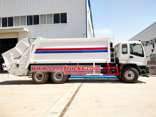 ISUZU FVZ COMPatorCaminhão de lixo, também conhecido como Isuzu Hydraulic CompatorCaminhão de lixo, Isuzu Trowed CompatorCaminhão de lixo, é um veículo especial usado especialmente para a coleta e transferência de resíduos sólidos municipais CEEC Os caminhões reúnem muitos anos de experiência produtos fabricados O objetivo do projeto de caminhões de lixo traseiro é coletar com eficiência resíduos sólidos municipais e compactar o lixo através do mecanismo de compressão no veículo, evitando assim a ineficiência do transporte de pequenas quantidades de lixo em longas distâncias e, finalmente, transportar o lixo para um local de descarte de lixo para o descarte central.
