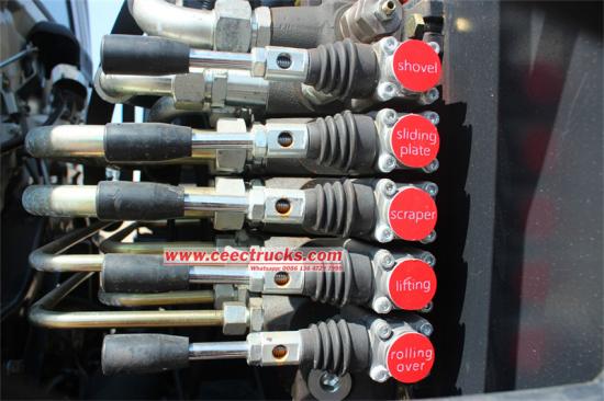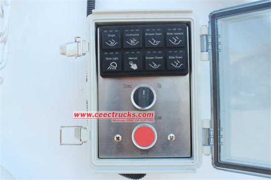 Com os métodos manuais e automáticos de duas formas de controle, o operador pode operar na cabine, na parte traseira do caminhão, muito conveniente e eficiente, também equipado com o dispositivo de trabalho do botão de parada de frenagem de emergência | ||