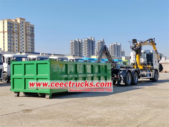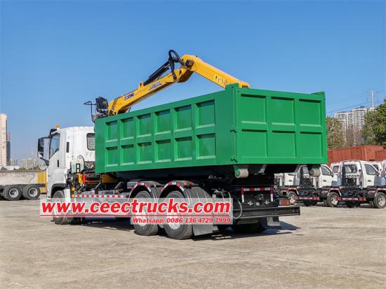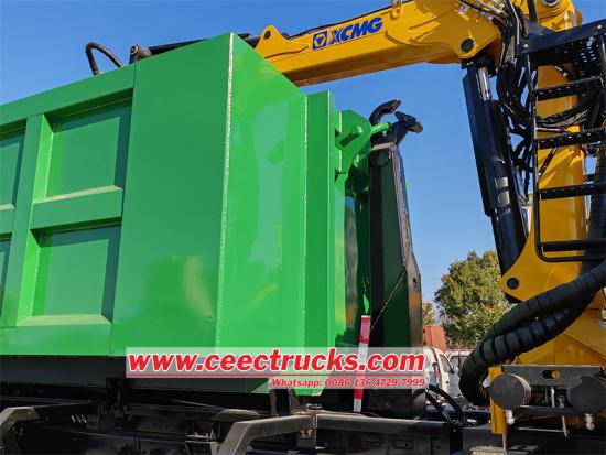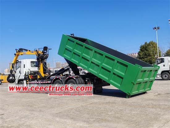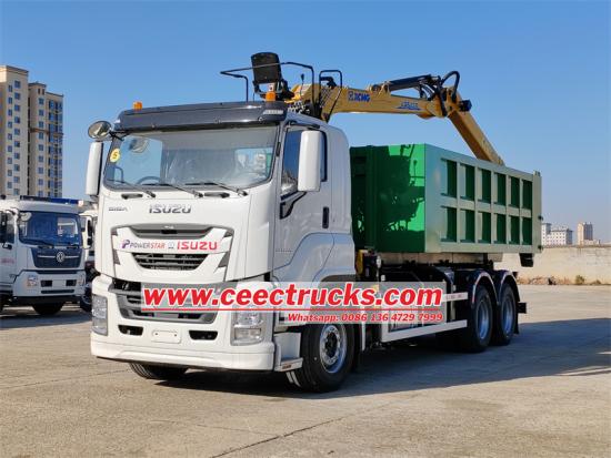 XCMG LQS120 knuckle crane with grabberO Isuzu Heavy Duty Hook Lift Truck com recipiente Equipado com o XCMG LQS120 Loader Crane é uma máquina poderosa e versátil projetada para aplicações para serviços pesados O guindaste dobrável, a capacidade de elevação impressionante e a sucata dedicada tornam este caminhão um ativo valioso para uma ampla gama de indústrias, da construção à reciclagem Seu chassi acidentado, motor poderoso e transmissão suave aprimoram ainda mais suas capacidades operacionais, garantindo um desempenho confiável e eficiente nos ambientes mais exigentes