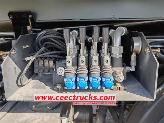 Grab de sucata de aço de extremidade cauda: Uma característica especializada deste guindaste é a garra de aço presa na extremidade traseira Essa garra foi projetada para manter e manipular com segurança restos de aço, tornando o caminhão altamente eficiente nas operações de reciclagem e gerenciamento de resíduos