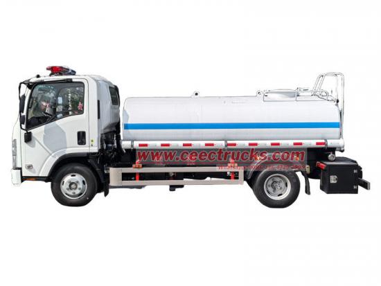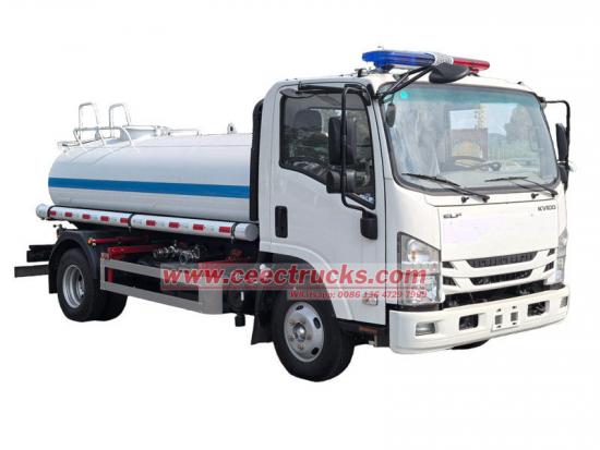 O caminhão-pipa rebocável Isuzu KV100 com aspersor (também conhecido como caminhão-pipa Isuzu, caminhão-tanque Isuzu, caminhão de transporte de água potável Isuzu, caminhão-pipa Isuzu) é usado para transportar e fornecer água, seja ela industrial ou agrícola. Possui tratamento interno atóxico ou tanque de aço inoxidável.