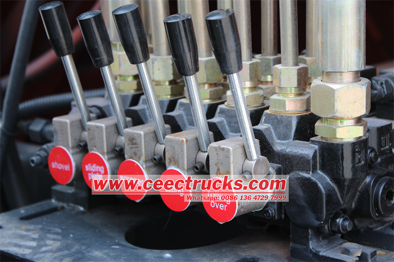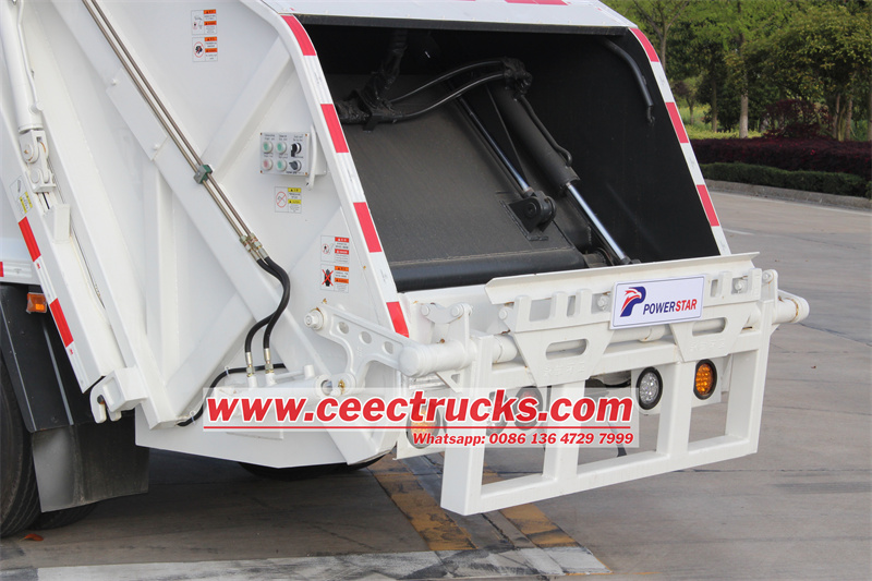 O Caminhão Compactor de Garbagem Isuzu Utiliza o uso de energia especial (PTO) para obter energia do motor e, em seguida, transfira a energia para a bomba de engrenagem, para girar a bomba A bomba começa a trabalhar para transferir o óleo hidráulico para os cilindros através de oleodutos e cilindros que trabalham para tornar todos os equipamentos de caminhões de lixo funcionando, incluindo porta traseira, placa de empurrar, placa deslizante, raspador e dispositivo de inclinação E depois perceba toda a função do caminhão compactador de lixo