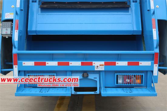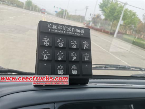O caminhão se orgulha Sistemas de controle avançado Isso facilita a operação fácil e eficiente Possui um sistema de controle elétrico Taiwan Yonghong Plc (controlador lógico programável), que permite uma automação precisa e confiável do processo de compactação de lixo Existem dois conjuntos de botões de controle elétrico estrategicamente posicionados para a conveniência do operador: um definido dentro da cabine do motorista e outro no lado esquerdo da porta traseira Além disso, o caminhão está equipado com um dispositivo de operação manual hidráulico localizado na parte traseira da cabine, fornecendo um método alternativo de controlar as funções de compactação de lixo em caso de falha do sistema elétrico ou para substituição manual Esse sistema de controle duplo garante que o caminhão possa ser operado de maneira suave e eficiente, atendendo às diversas necessidades das operações de gerenciamento de resíduos