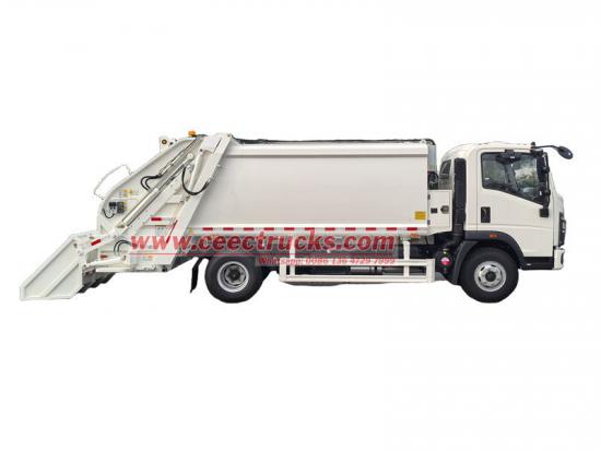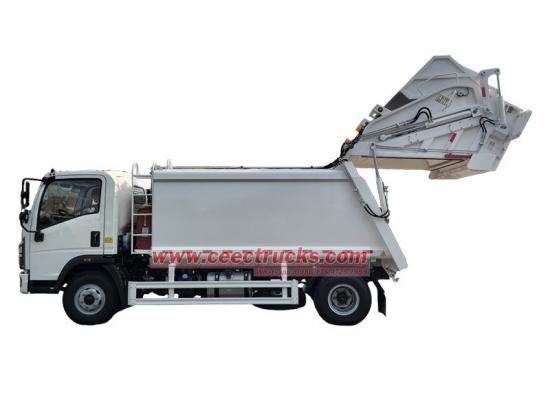 O caminhão de carregamento traseiro Sinotruk howo 8 cbm (também chamado de caminhão compactador de resíduos, caminhão de lixo com carregador traseiro, caminhão de lixo com carga lateral, caminhão compactador de lixo, caminhão de coleta de resíduos com carregador traseiro, caminhão compactador de lixo) é um novo tipo de veículo de saneamento especialmente usado para coletar, transferir e remover lixo.