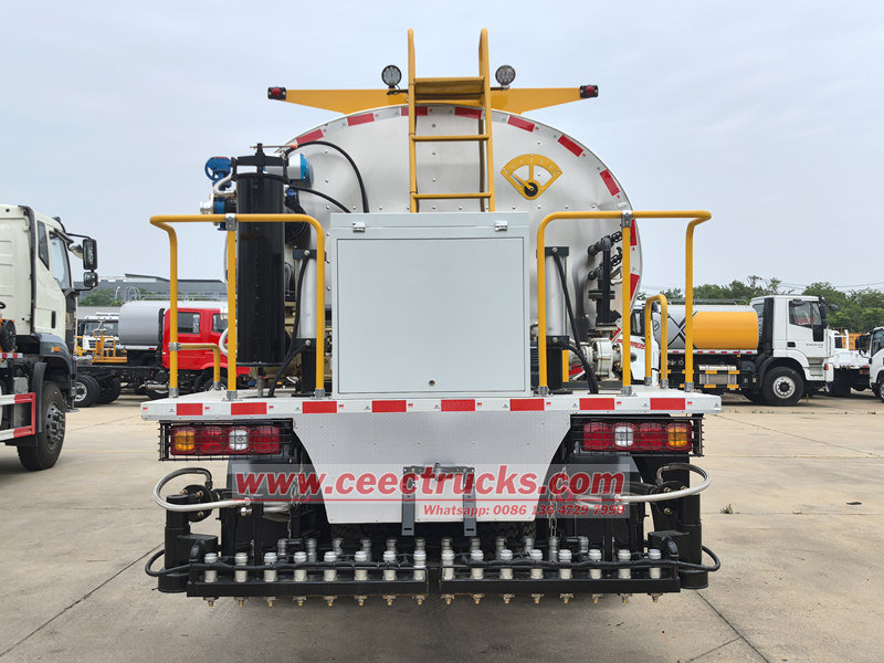 O Distribuidor Automático de Asfalto Shacman consiste em um tanque de armazenamento, sistema de aquecimento, sistema de pulverização, sistema de controle e unidade de energia. O tanque de armazenamento adota um design de isolamento de camada dupla e é equipado com um tubo de aquecimento por circulação de óleo para transferência de calor para garantir que o asfalto mantenha uma temperatura adequada (geralmente 150-180°C) durante o transporte e a pulverização.