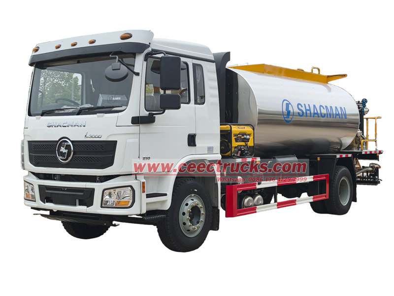 4x4 drive avaiableO caminhão distribuidor de asfalto rodoviário Shacman é uma máquina especial utilizada na construção de rodovias e vias urbanas. É equipado com um recipiente isolante, bomba de asfalto, aquecedor e sistema de pulverização. Pode pulverizar asfalto quente, asfalto emulsionado, óleo residual e outros materiais líquidos.