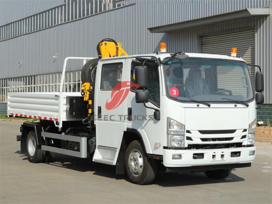 ISUZU NPR cabine dupla caminhão com dobrando guindaste |